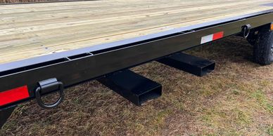 Stake Pockets and bump rail run full length of the trailer deck. Chain Lugs are also available.