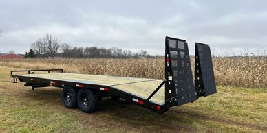 With out optional Super Ramps the trailers beavertail becomes usable flatbed area. They also stand up at 90-degrees.